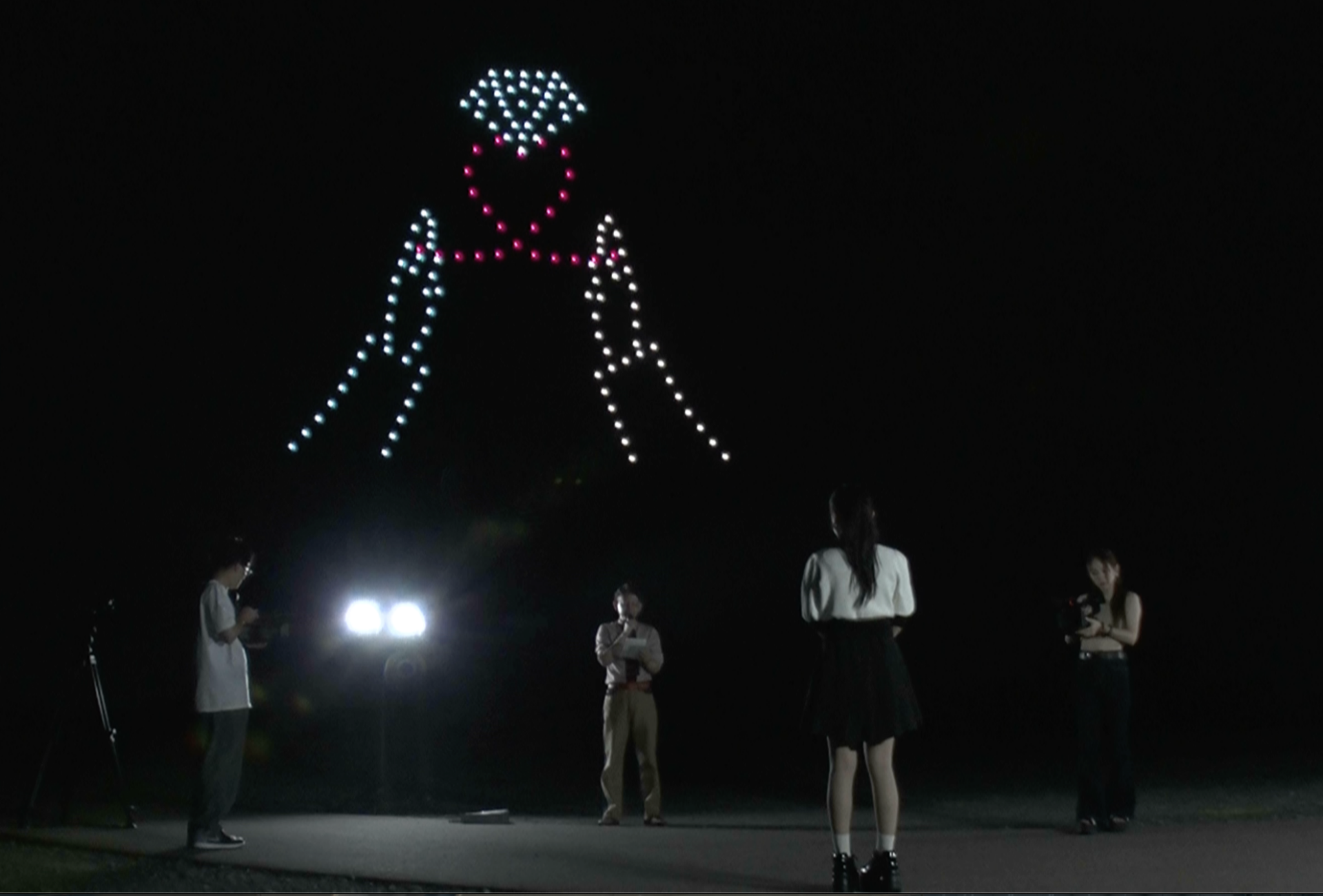 大阪府貝塚市にて200機のプロポーズドローンショーを実施